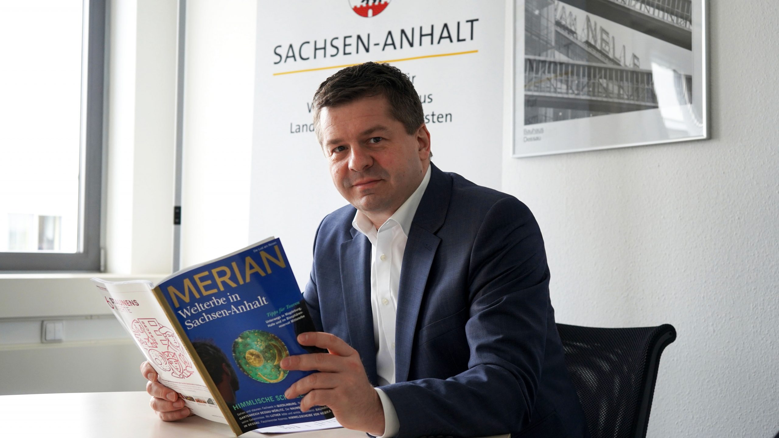 Sachsen-Anhalt punktet bei Touristen vor allem auch mit seinem Weltkulturerbe. Mit gleich fünf Weltkulturerbestätten (Stiftskirche und Schloss Quedlinburg, Gartenreich Dessau-Wörlitz, Bauhaus Dessau, Luthergedenkstätten Wittenberg und Eisleben, Naumburger Dom), zwei Weltdokumentenerben (Himmelscheibe von Nebra, Frühe Schriften der Reformationsbewegung) und dem Biosphärenreservat Mittelelbe als Weltnaturerbe, habe das Land einiges zu bieten. „Dies ist bundesweit die höchste Dichte der UNESCO-Welterben und damit ein kulturtouristisches Alleinstellungsmerkmal Sachsen-Anhalts“, sagt Tourismusminister Sven Schulze bei der heutigen Vorstellung des neuen Merian-Magazins „Welterbe in Sachsen-Anhalt.