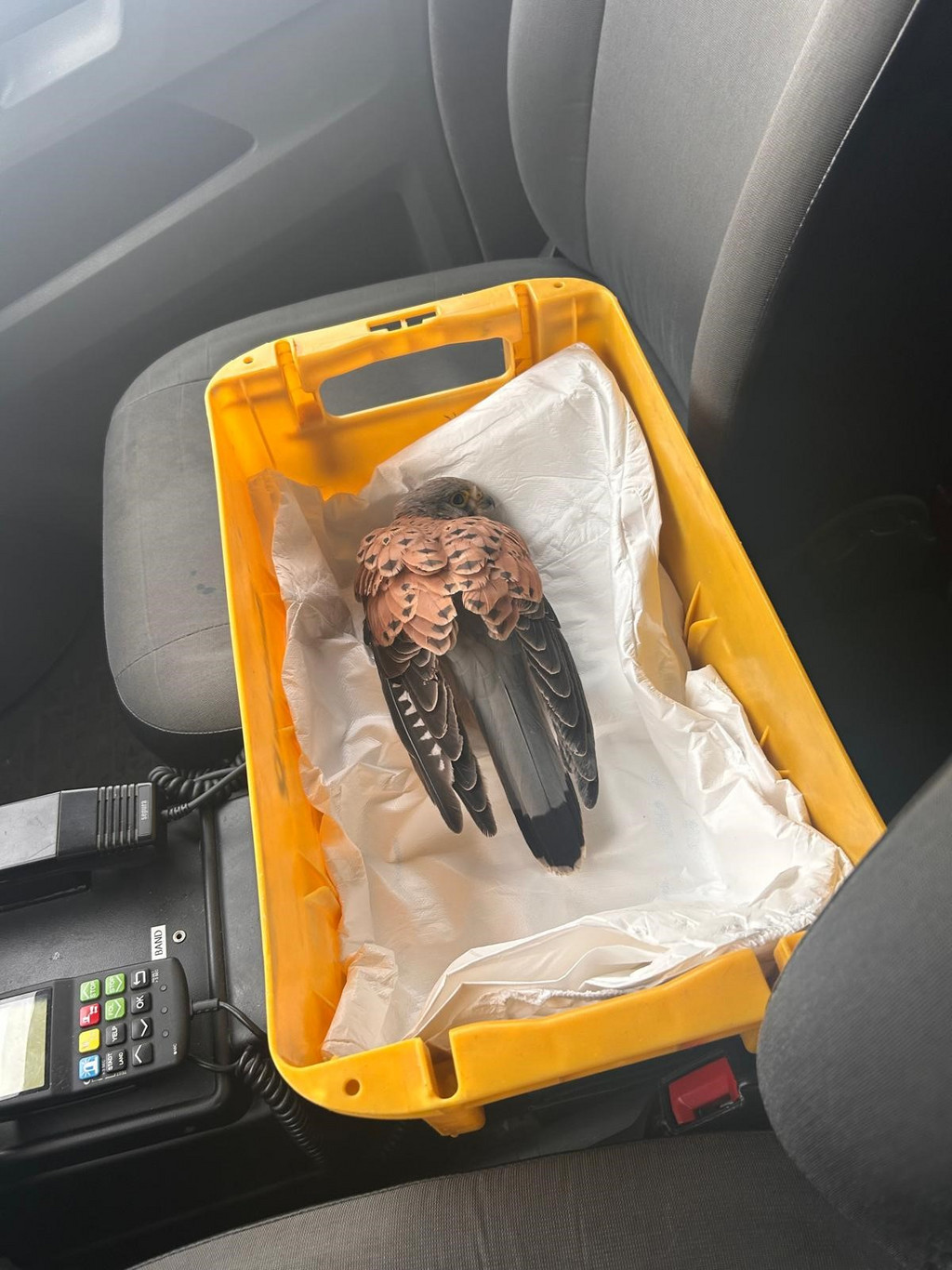 Während der Abarbeitung eines polizeilichen Einsatzes konnten Polizeibeamte einen verletzten Turmfalken am Straßenrand feststellen. Eine Begutachtung des gesundheitlichen Zustandes des Falken ergab, dass dieser augenscheinlich aufgrund einer Verletzung flugunfähig ist. Die Beamten entschieden sich umgehend dem hilfebedürftigen Tier zu helfen, luden diesen mit einer Decke in eine Kiste und fuhren nach der Abarbeitung des Einsatzes zu einem Tierarzt, welcher sich dankenswerter Weise bereit erklärt hatte, sich um den Falken zu kümmern. Aufgrund des Einsatzes der Polizeibeamten konnte der Falke bestmöglich versorgt werden.